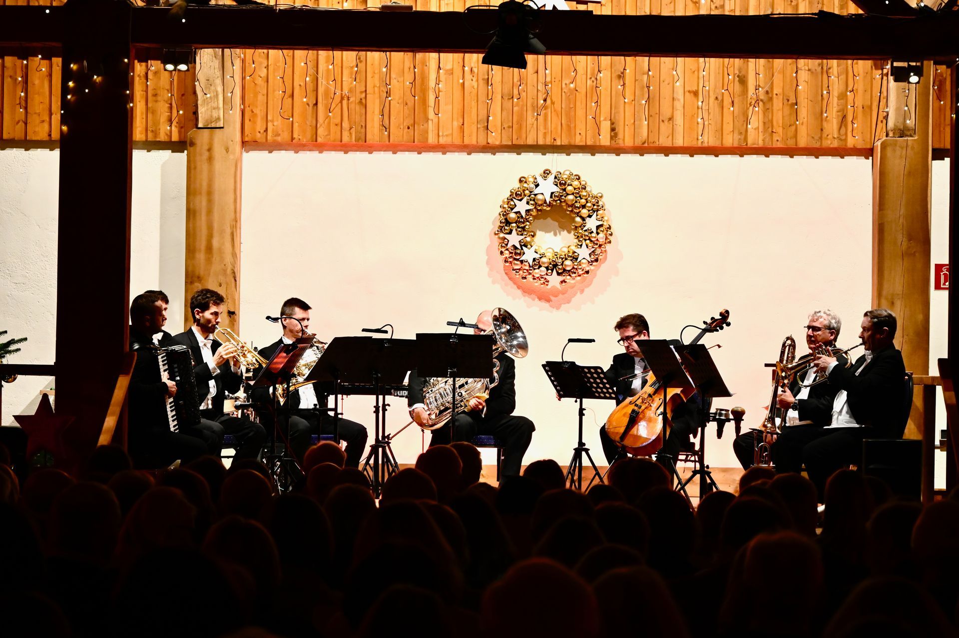 Die Scheune auf dem Hof Zerhusen ist schon lange kein Geheimtipp mehr. Jedes Jahr in der Vorweihnachtszeit lädt die Familie Zerhusen die Dammer Bürgerstiftung und ihre Gäste zu zwei festlichen Konzerten ein. In diesem Jahr besuchten rund 500 Zuhörer das Stiftungskonzert am Samstag und Sonntag mit dem „Deutschen Blechbläserquintett and friends“. „Wenn wir kommen, ist schon alles festlich geschmückt“, bedankte sich Christine Grimme zu Beginn bei Familie Zerhusen, die die Konzertscheune für das Event zur Verfügung stellt. Was die Gäste jedes Jahr begrüßt, ist eine festlich geschmückte Scheune, die sich hinter den großen Namen in Schleswig-Holstein nicht verstecken muss.